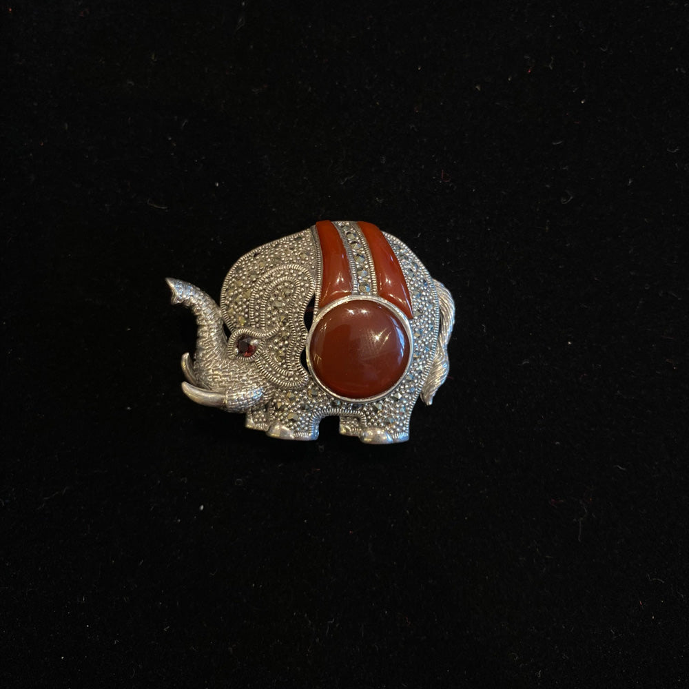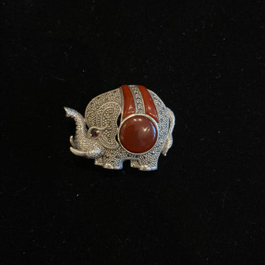 This elegant silver brooch features a beautifully detailed elephant motif, meticulously crafted to capture the grace and wisdom of the majestic creature. The design is enriched with vibrant Meenakari enamel work, where radiant colors fill intricate patterns, and further adorned with gleaming semi-precious stones for added brilliance. A harmonious blend of cultural symbolism and traditional artistry, this piece embodies both strength and serenity. It is designed to be a meaningful and versatile accessory, adding a touch of heritage charm and artisanal color to any ensemble.