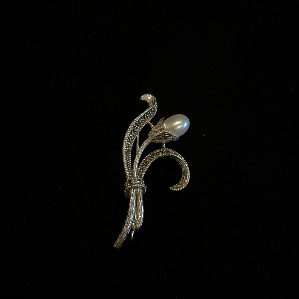 This whimsical silver brooch is a delightful celebration of texture and light, featuring a strikingly sculpted 3D floral motif at its heart. The dimensional bloom is artfully adorned with a sparkling array of semi-precious stones and the soft, organic luster of pearls, creating a captivating play of shine and subtlety. With its unique blend of playful charm and sophisticated detail, this piece breaks from tradition to make a joyful statement. It is the perfect accessory to add a touch of artisanal wonder and personalized elegance to any outfit, from casual layers to evening attire.