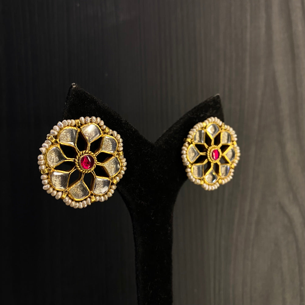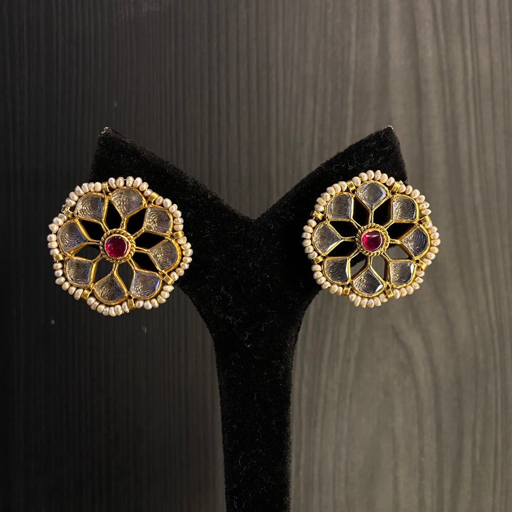These minimal jewellery studs, crafted in silver and finished with a soft gold tone, offer a whisper of understated elegance. Each piece is centered around a single, luminous freshwater pearl, its organic glow providing a touch of serene sophistication against the sleek metal. Perfect for everyday wear, they effortlessly elevate a simple cotton saree or a crisp linen kurta, proving that true refinement often lies in the most delicate details. All Handcrafted Products Are Imperfectly Perfect.