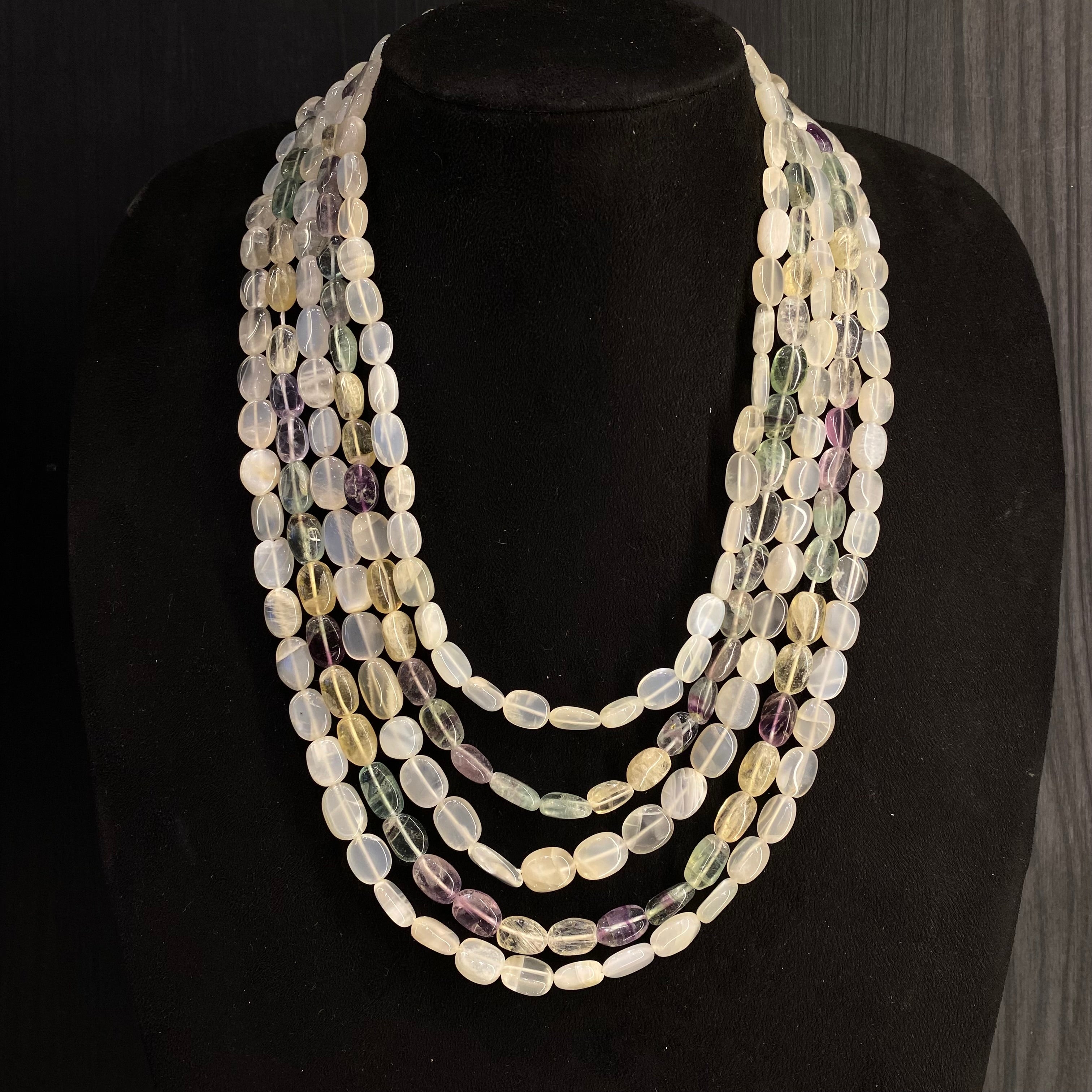 This layered silver necklace is a masterful expression of serene opulence, designed as a distinguished royal mala. Multiple strands of cool, polished silver are artfully woven with a curated selection of vibrant semi-precious stones, creating a rich tapestry of metallic shine and gemstone color. The substantial, tiered construction lends a graceful weight and undeniable presence, elevating this piece beyond a spiritual tool into a magnificent heirloom of refined, contemporary royalty.
