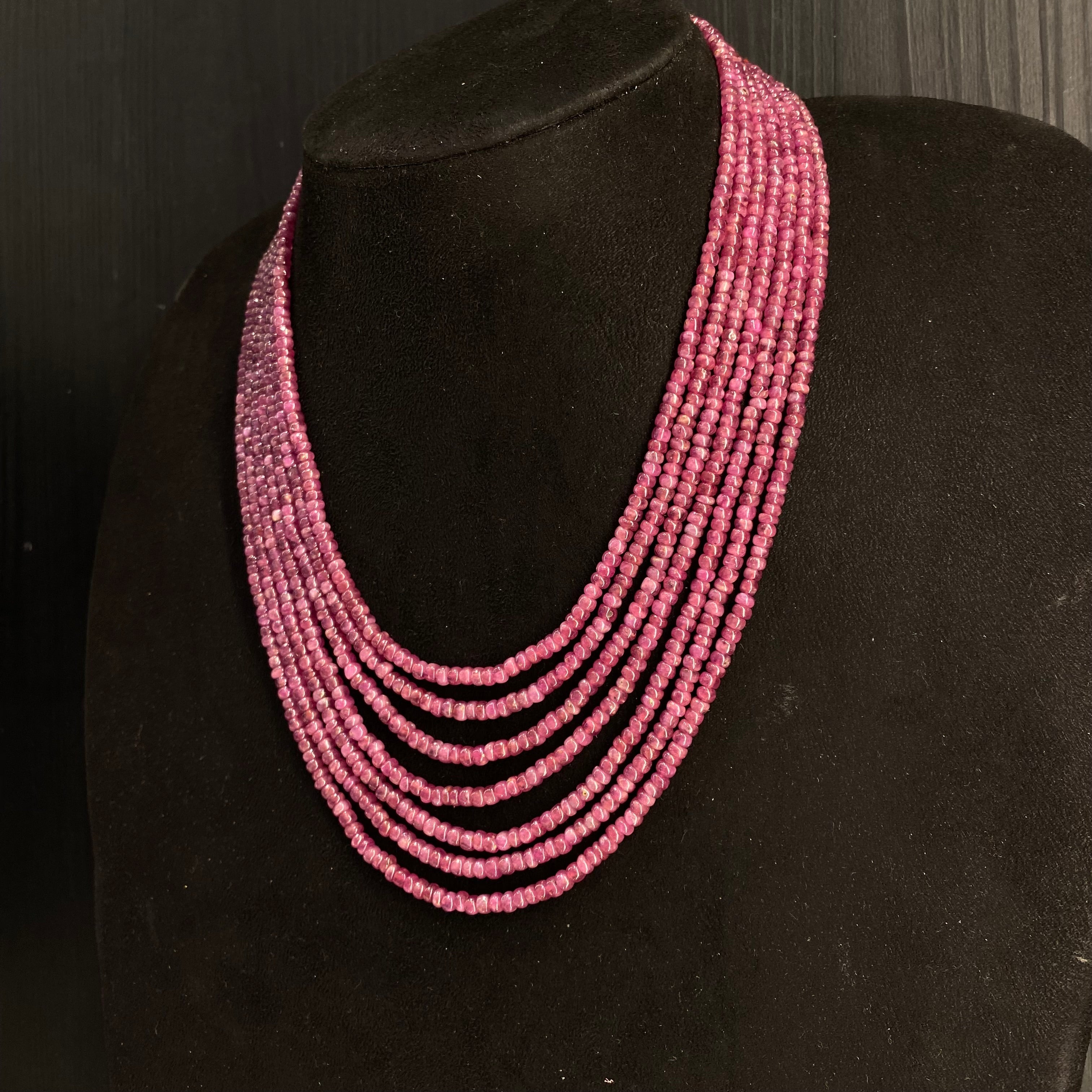 This creation is the pinnacle of passionate opulence, a royal mala conceived as a layered ruby necklace of commanding presence. Multiple, generous strands of deep red rubies are gathered to form a substantial and vibrant cascade, where the intensity of the gemstones is multiplied into a breathtaking spectacle of color and light. This lavish, tiered construction transcends the traditional mala, establishing it as a definitive royal necklace and a layered heirloom jewel of extraordinary power and majestic elegance.