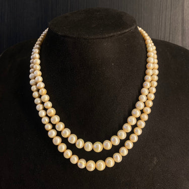 This is a statement pearl mala, redefined through the art of layering. It is composed of multiple, generous strands of impeccably matched pearls, each layer adding to a substantial and luminous cascade. The deliberate, tiered construction creates a rich texture and an undeniable volume of soft, pearlescent glow. This layered mala transcends its traditional form, becoming a powerful and elegant declaration of timeless sophistication and serene opulence.