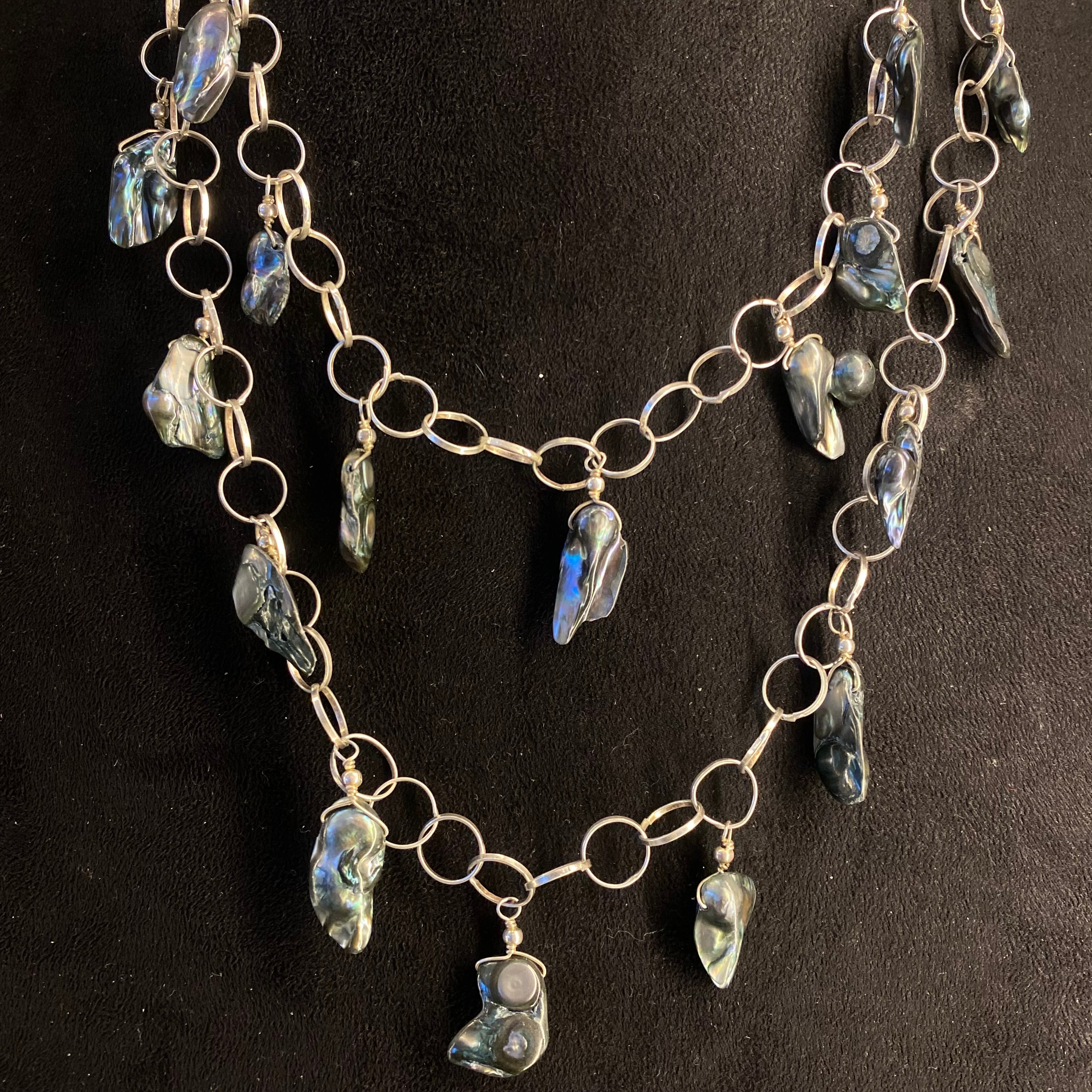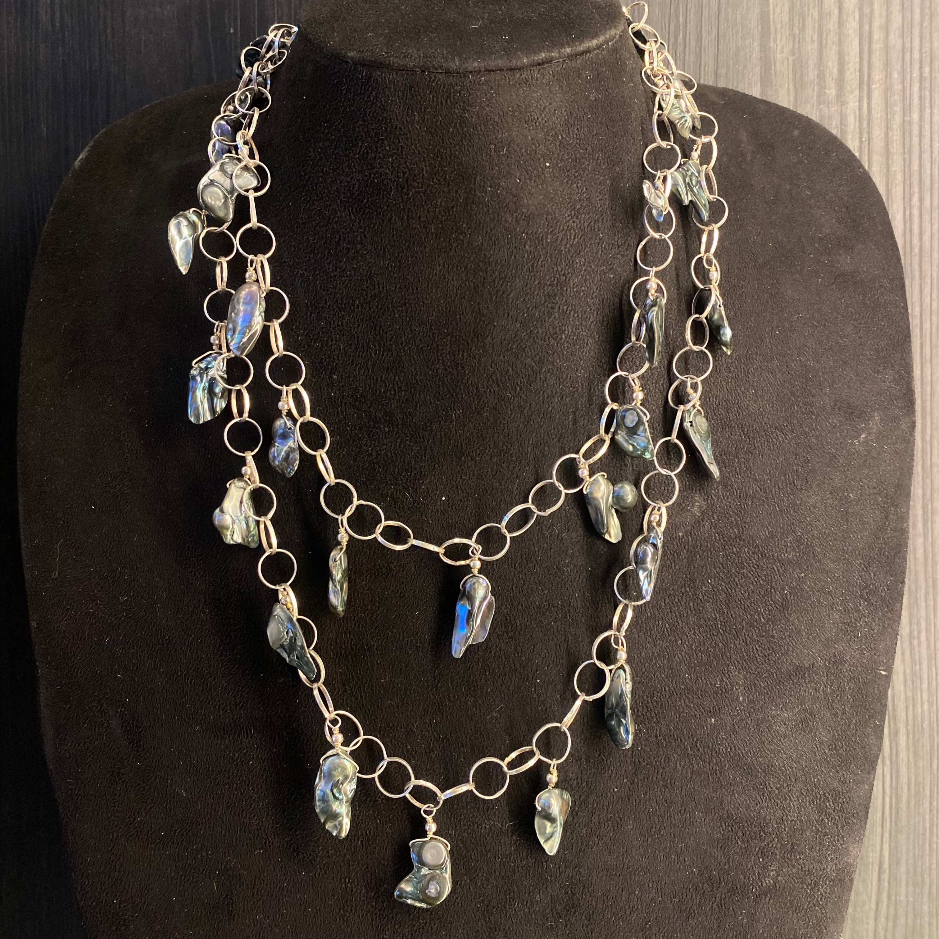 This silver layered necklace is a bold expression of free-spirited style, masterfully blending the essence of boho and tribal jewellery. Multiple strands are artfully combined, each adorned with a vibrant array of semi-precious stones that catch the light with an earthy, organic glow. The textured, tiered construction creates a dynamic and substantial presence, evoking a sense of handcrafted authenticity and nomadic elegance. It is a definitive statement piece for those who wear their artistry with confidence and soul.