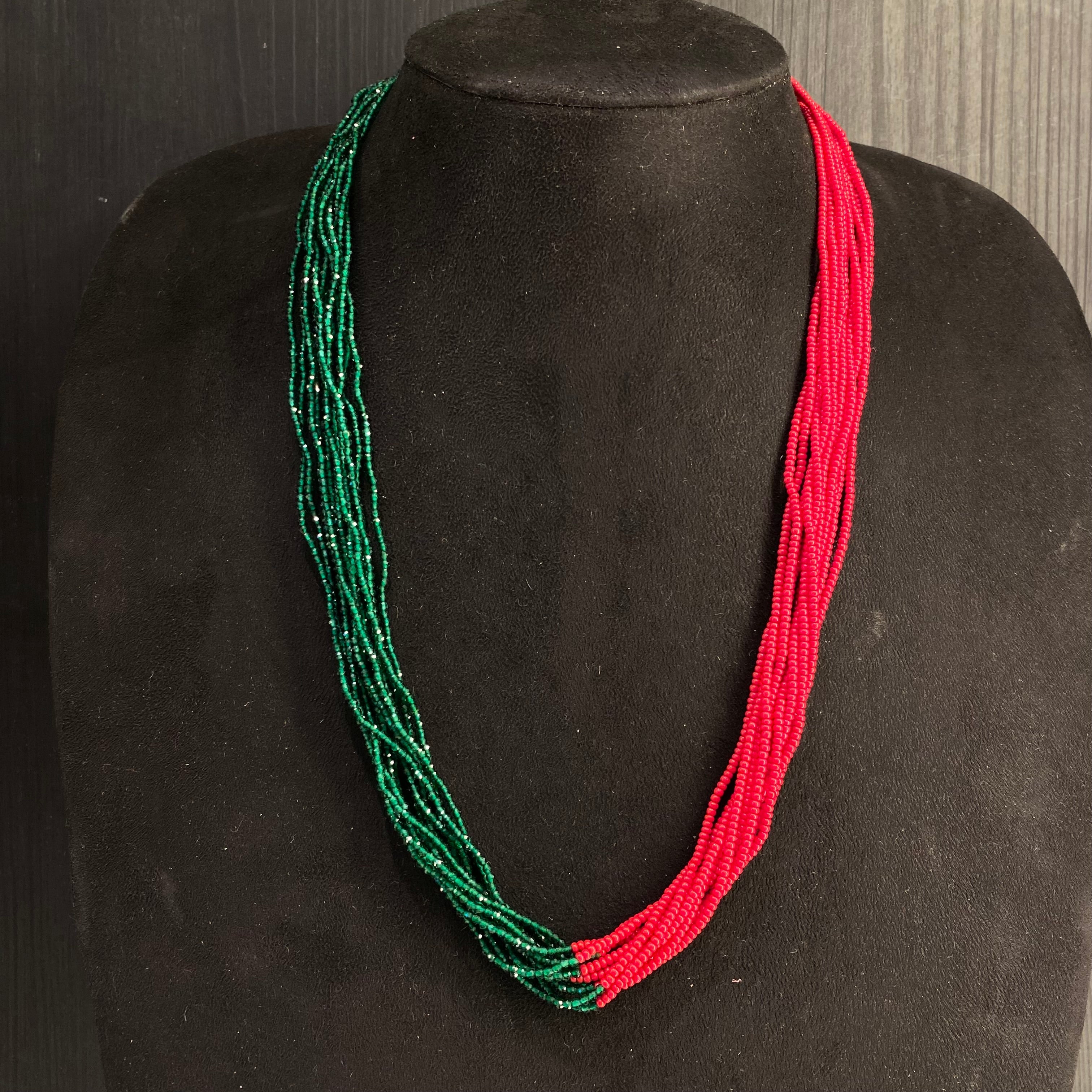 This distinctive piece is a royal mala reimagined with contemporary contrast, crafted as a sophisticated two-tone mala in an elegant layered design. It intertwines strands of complementary semi-precious stones, utilizing their varied colors to create a deliberate and harmonious two-tone effect. This intentional play of hues is amplified through the tiered, layered construction, building a substantial and textured presence that transforms it into a commanding layered necklace. The result is a unique heirloom that blends spiritual function with a bold, modern aesthetic.