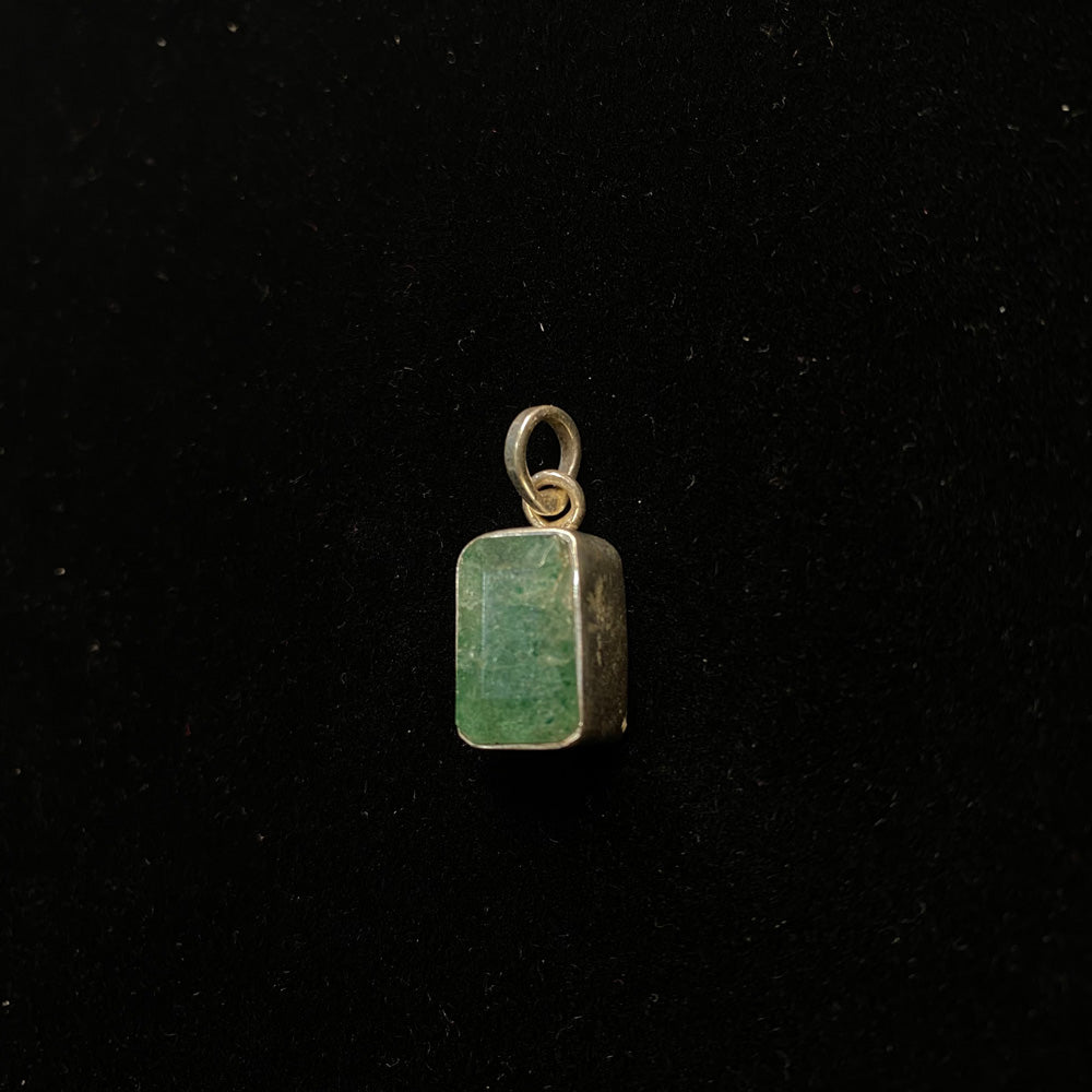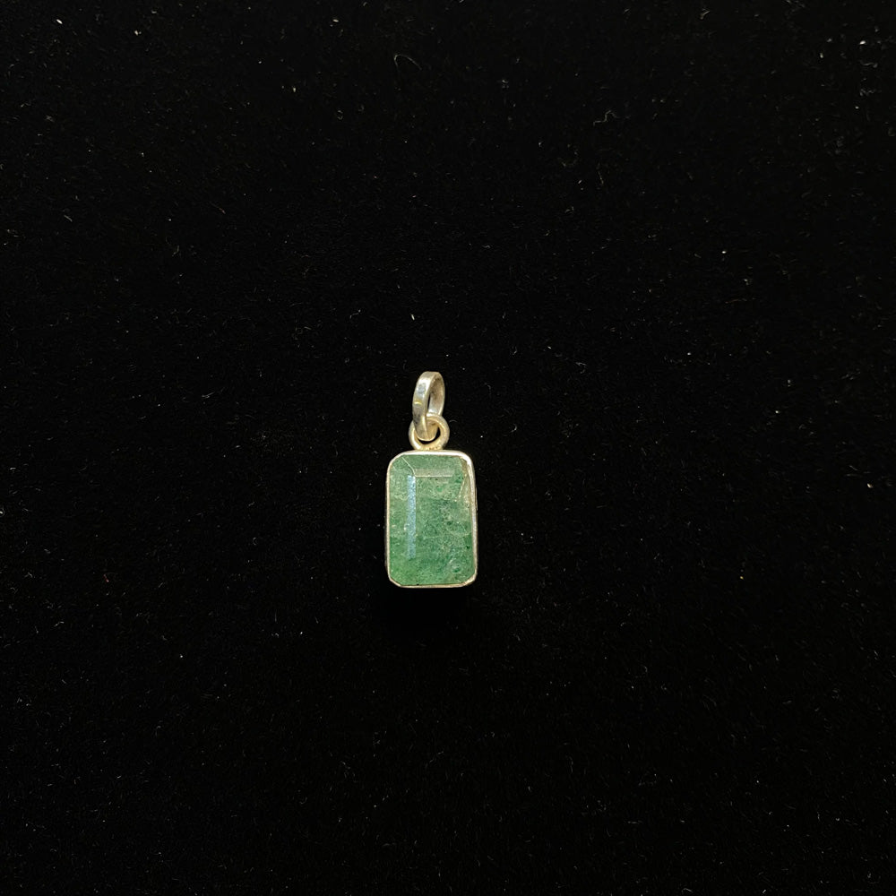 This elegant minimal pendant features a refined emerald set within a clean, silver setting. The simplicity of the design highlights the deep green beauty of the stone, creating a subtle yet striking silver pendant.