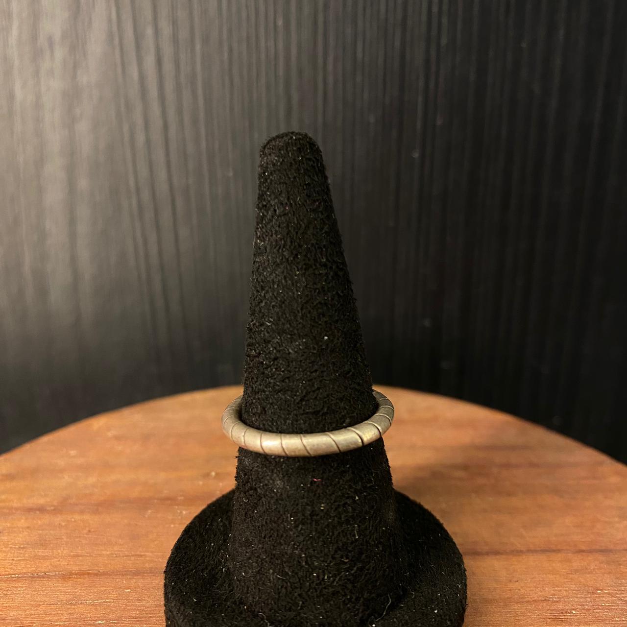 This silver ring presents a minimal design through a single, continuous twist in the band, creating a subtle yet striking texture. The clean, twisted form carries an essence of tribal simplicity, focusing on shape and movement rather than ornamentation. It is a versatile piece of tribal-inspired jewelry that offers a modern and understated elegance. Disclaimer: All Handcrafted Products Are Imperfectly Perfect.
