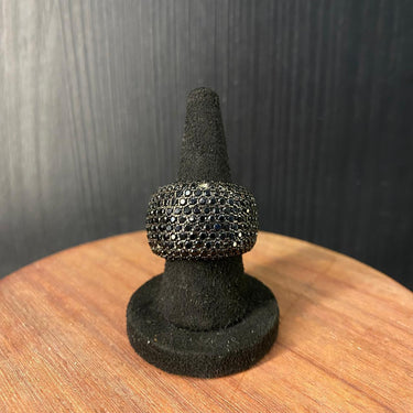 This is a bold oversize silver ring, designed to make a statement on the finger. It features a prominent semi-precious stone as its focal point, set within a band adorned with intricate tribal patterns. The combination of the substantial scale, the raw beauty of the gemstone, and the ancient-inspired etchings creates a powerful piece of tribal jewelry with a modern presence. Disclaimer: All Handcrafted Products Are Imperfectly Perfect.