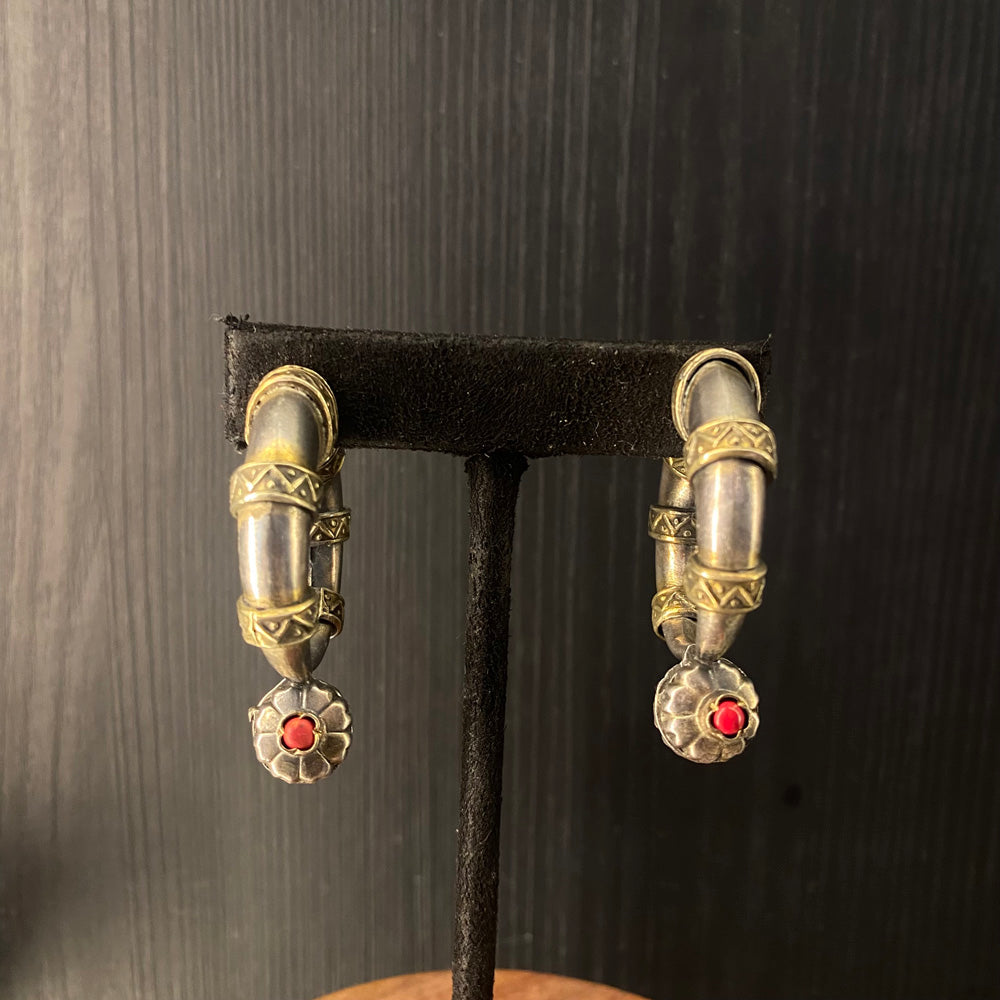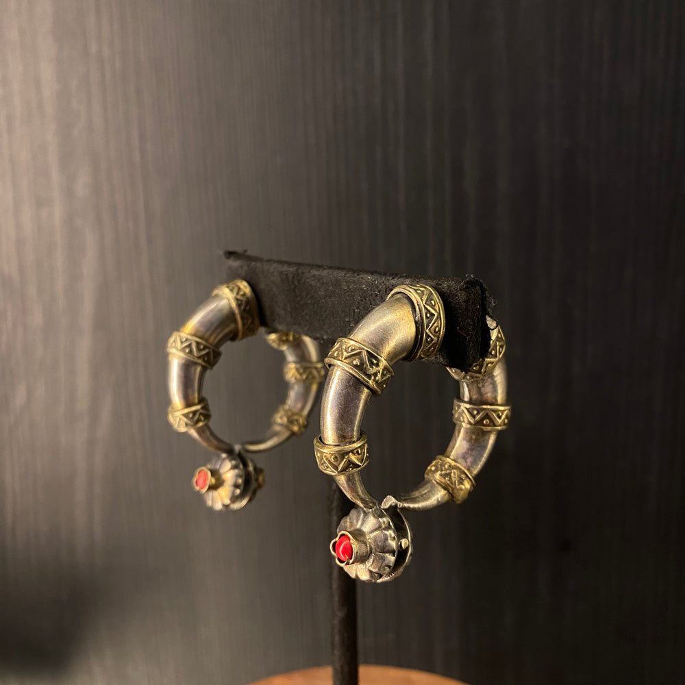 These elegant hoop earrings feature a dual-tone design that blends silver with a contrasting metallic hue, creating a subtle interplay of light. Their classic circular form carries a distinct old-world charm, offering a timeless and versatile accessory that bridges vintage appeal with modern simplicity.