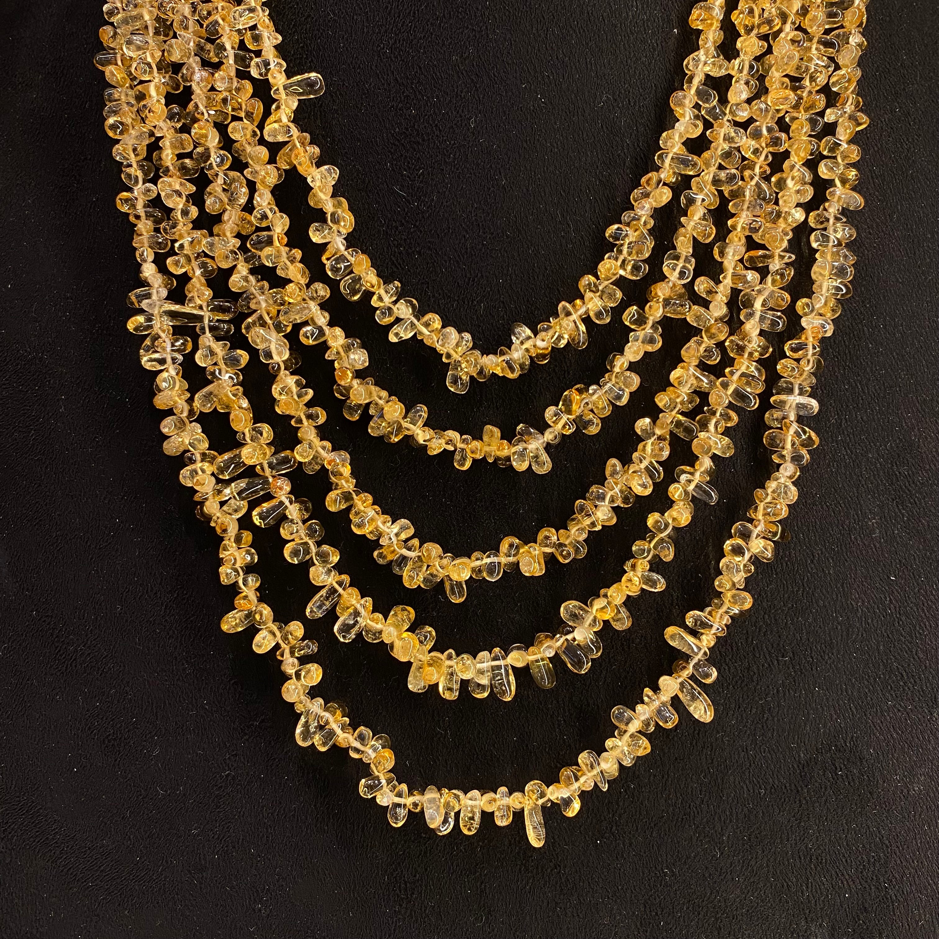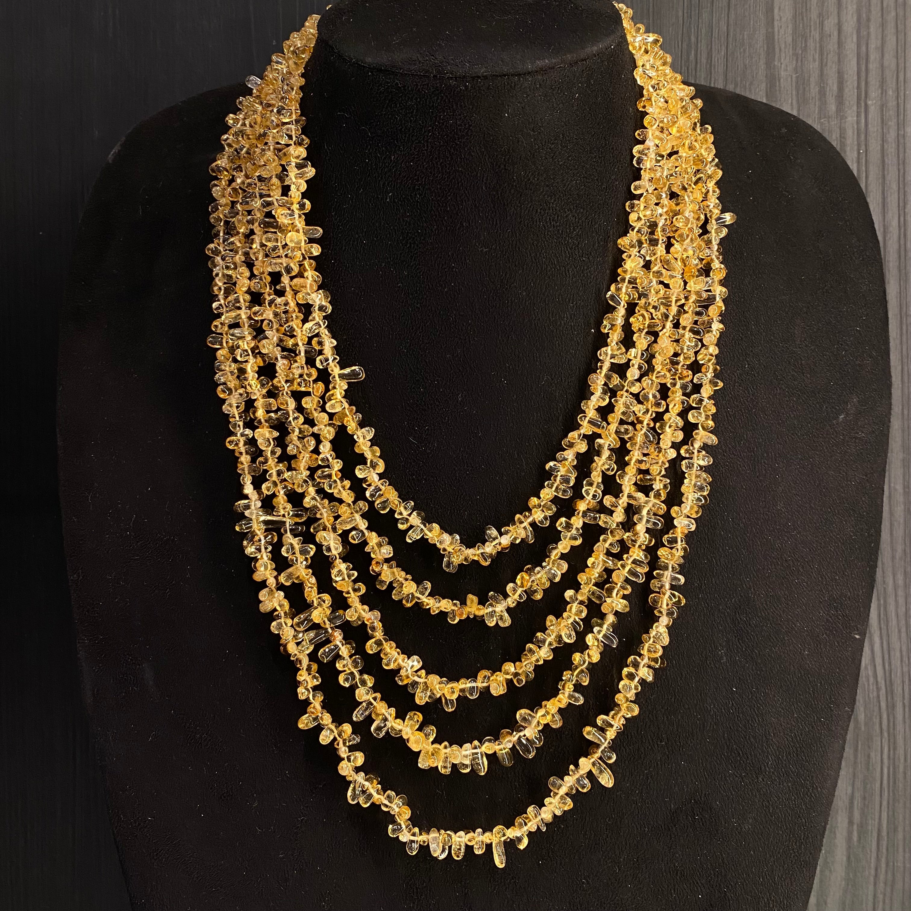 This royal mala achieves its majestic presence through a sophisticated layered design, composed of multiple strands of warm, golden citrine stone. The abundant layers create a substantial cascade of sunny radiance, where the stone's inherent brilliance is multiplied into a captivating display of light and color. This opulent construction elevates the traditional mala into a definitive piece of heritage jewellery, serving as both a spiritually uplifting instrument and a bold statement of regal elegance.