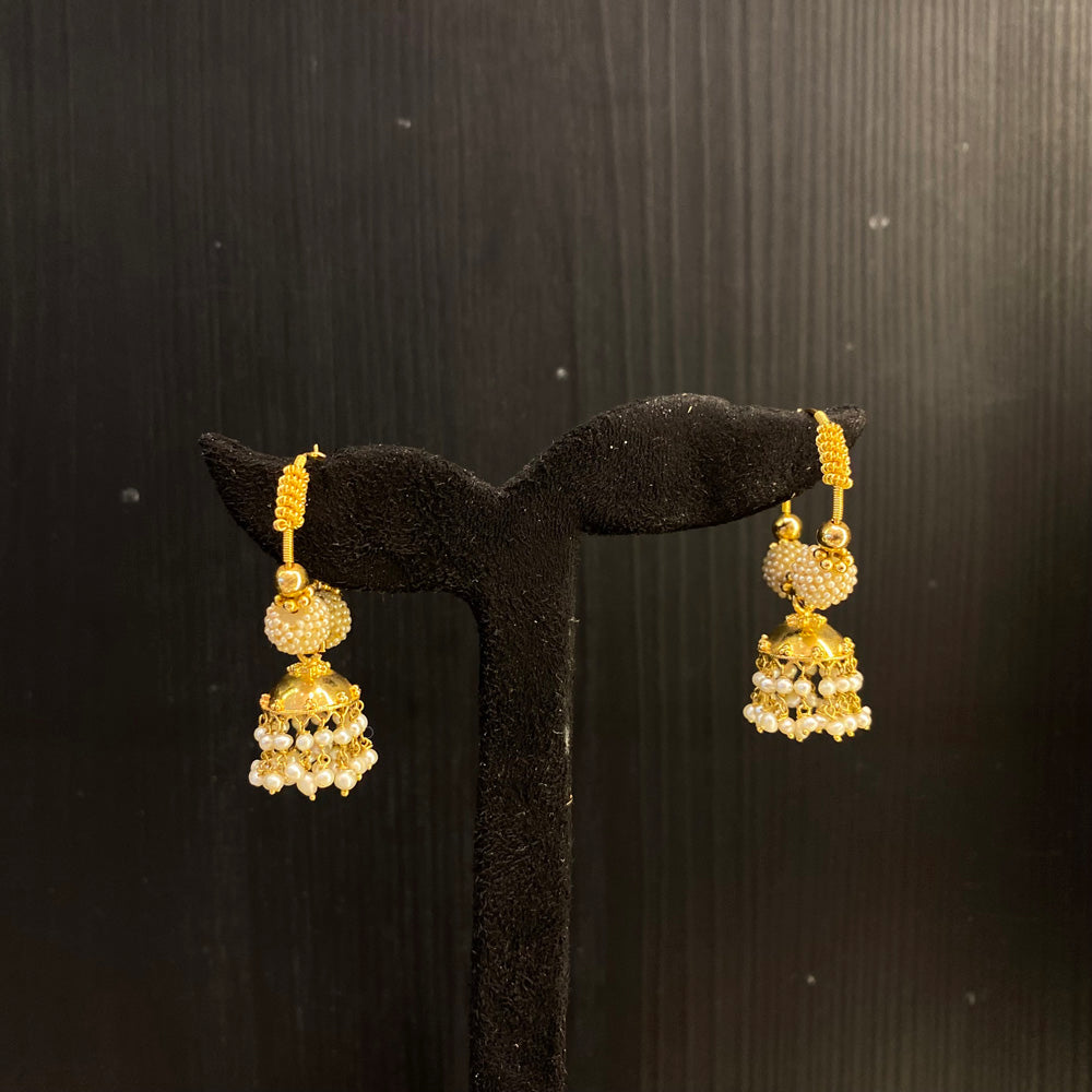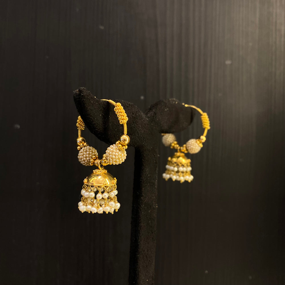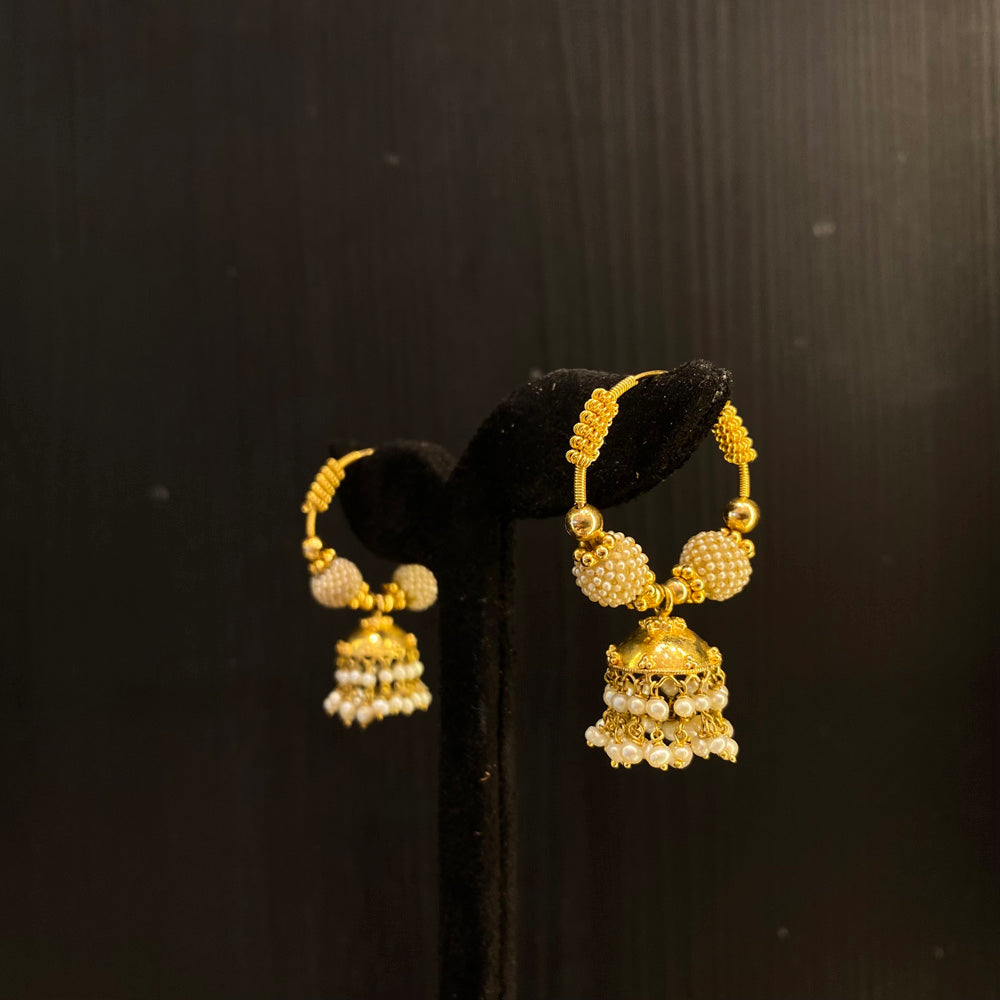 Whispers of heritage, captured in gold. These exquisite mini jhumkas are not mere ornaments, but legacies suspended in time. Meticulously crafted in radiant gold, each piece is delicately studded with the soft, ethereal glow of genuine Basra pearls—their luminous sheen a testament to nature's quiet elegance. Designed with the intricacy of heirloom artistry, these traditional jhumkis are destined to transcend the present, becoming treasured narratives passed lovingly from one generation to the next. To wear them is to adorn yourself with history, grace, and stories yet to be told.