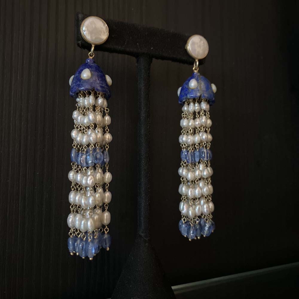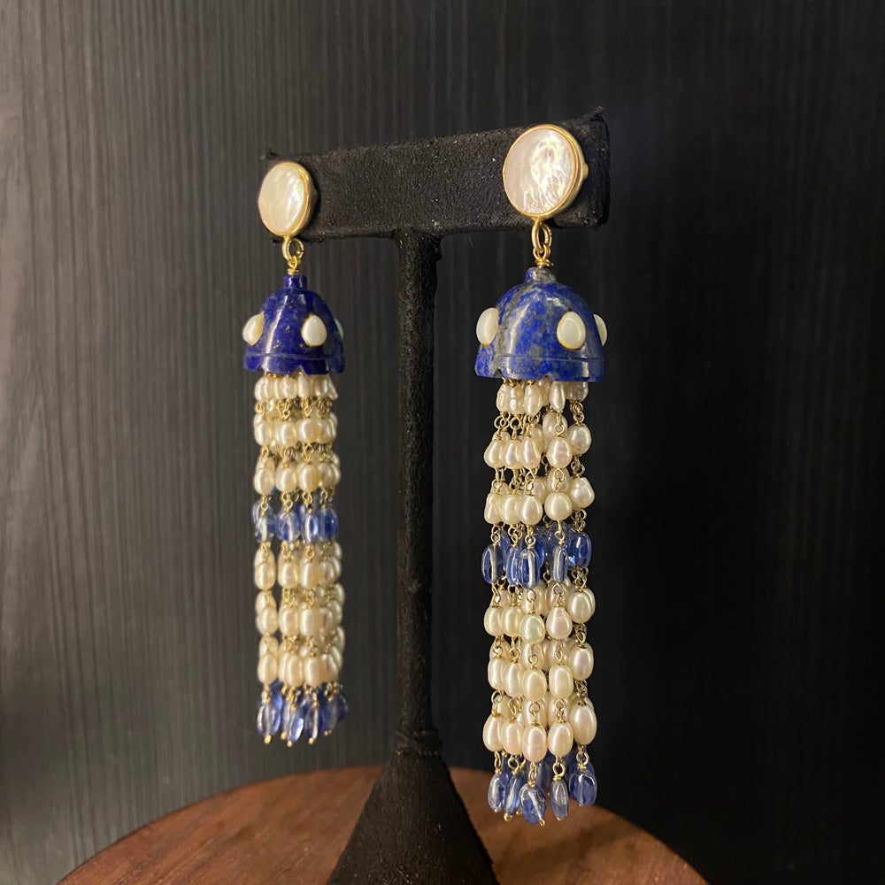 These silver earrings are beautifully enriched with vibrant meenakari enamel work, adding a burst of intricate color. They are elegantly accented with lustrous freshwater pearls and crafted in a graceful dangler silhouette. The combination of traditional artistry and organic elements gives these earrings a distinctive, free-spirited boho charm.