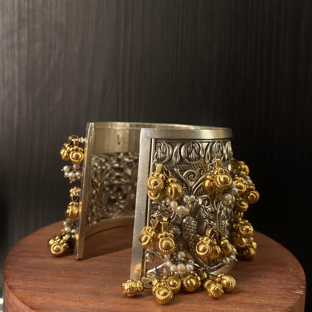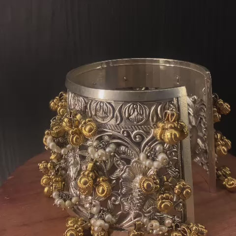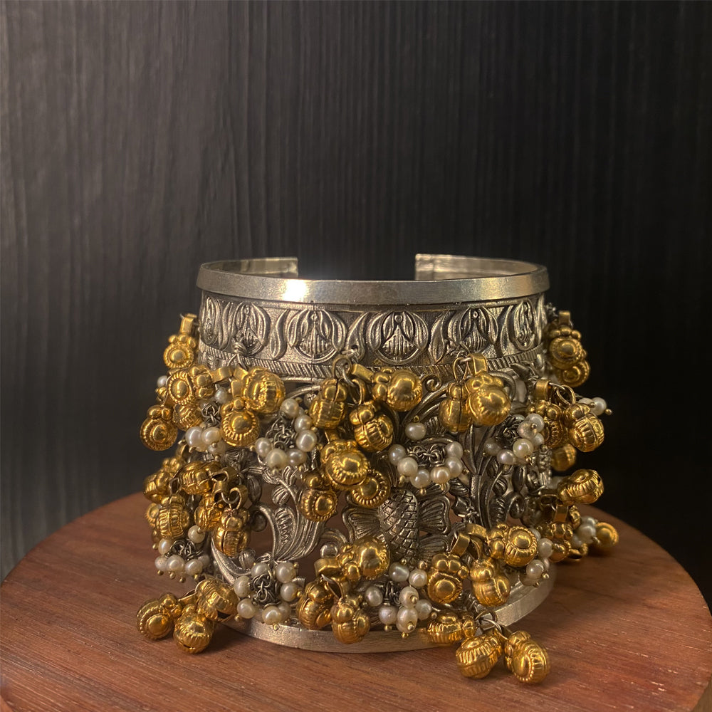 Give your wrist a serious style upgrade with an antique inspired bracelet with fine intricate silver carving and beauty all wrapped in one. The best part is: it is light in weight yet will give a heavy look to any simple attire as well. Material Used: Silver       Size: Adjustable Packaging: Embraced In A Designer Motifs Pouch & Packed With Love In A Beautiful Wooden Box. Product Code: S9441324A Disclaimer: All Handcrafted Products Are Imperfectly Perfect.