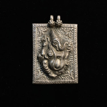 This finely made pendant presents the revered form of Ganesha within the clean lines of a rectangle-shaped pendant. Crafted in silver, this Ganesha pendant offers a harmonious blend of sacred symbolism and modern geometric elegance.