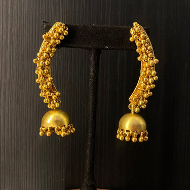 These elegant earrings combine a warm gold tone with gleaming silver in a dual-metal design. Crafted in a classic jhumki silhouette, they are delicately adorned with tiny ghungroo bells that create a soft, melodic chime with every movement. This blend of traditional form and mixed metals results in a piece that is both charming and sophisticated.Disclaimer: All Handcrafted Products Are Imperfectly Perfect.