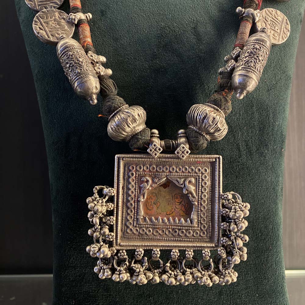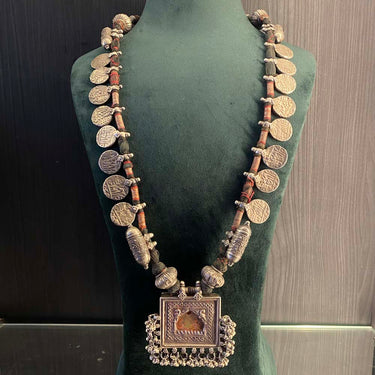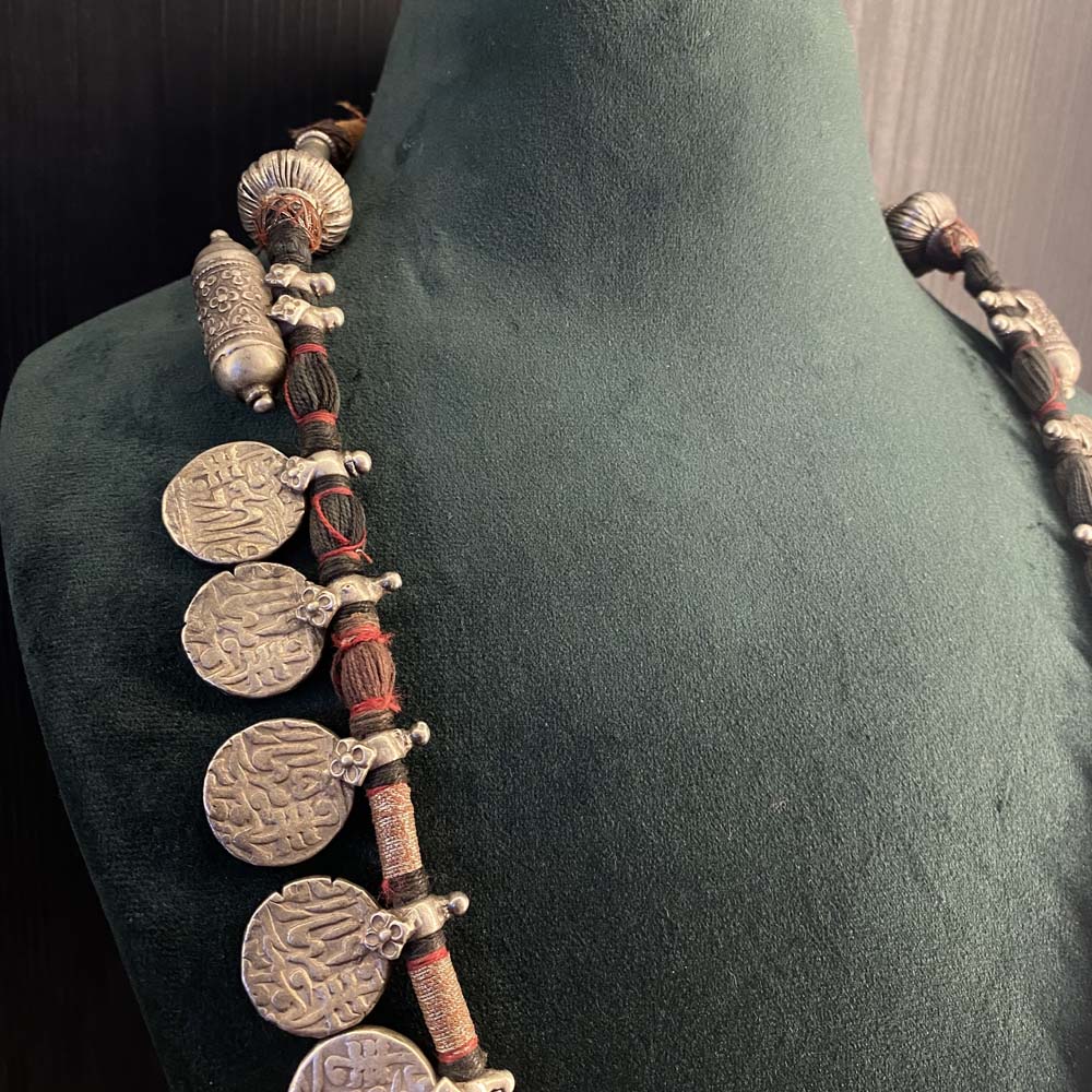 Evoking the spirit of heritage and artistry, this silver necklace is a striking blend of tradition and individuality. Designed as a long necklace, it draws inspiration from tribal aesthetics while exuding the charm of a vintage necklace. Adorned with delicately crafted silver coins, this coin necklace becomes a powerful statement piece—celebrating the raw beauty of silver in its most authentic form. Perfect for layering or wearing solo, it is a timeless treasure for the modern collector.Disclaimer: All Handcrafted Products Are Imperfectly Perfect.