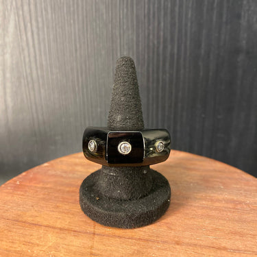 This silver ring centers on a polished black onyx, a favored semi-precious stone known for its sleek and protective qualities. Set in sterling silver with an organic, slightly hammered finish, the design carries an unmistakable boho spirit. It is a quintessential piece of boho jewellery, blending earthy gemstone allure with artisanal metalwork for a look that is both grounded and elegant. Disclaimer: All Handcrafted Products Are Imperfectly Perfect.